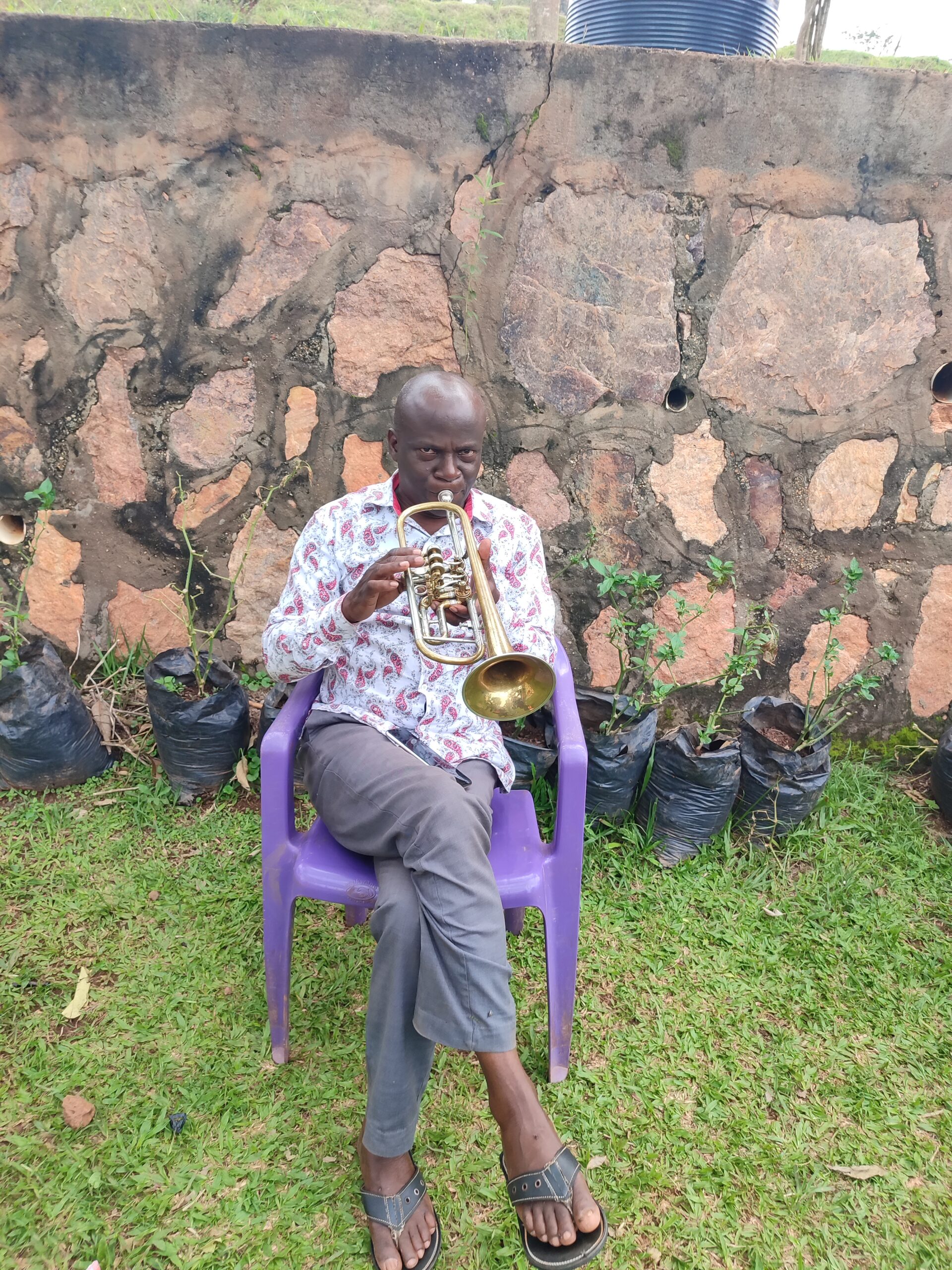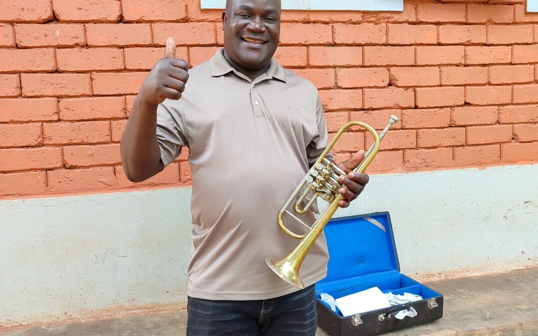 Große Freude bei den Musikern der Brass Band und sogar Micheal hat wieder zur Trompete gegriffen! Unser Vorstandsmitglied Harald hat Werbung gemacht bei seinen Musikerfreunden aus dem Raum Stuttgart und konnte den beiden neuen Freiwilligen im Rainbow House eine Trompete mitgeben, als sie nach Uganda geflogen sind. Sie kommt unermüdlich zum Einsatz. „So ein gutes Instrument hatten wir schon lange nicht mehr.“